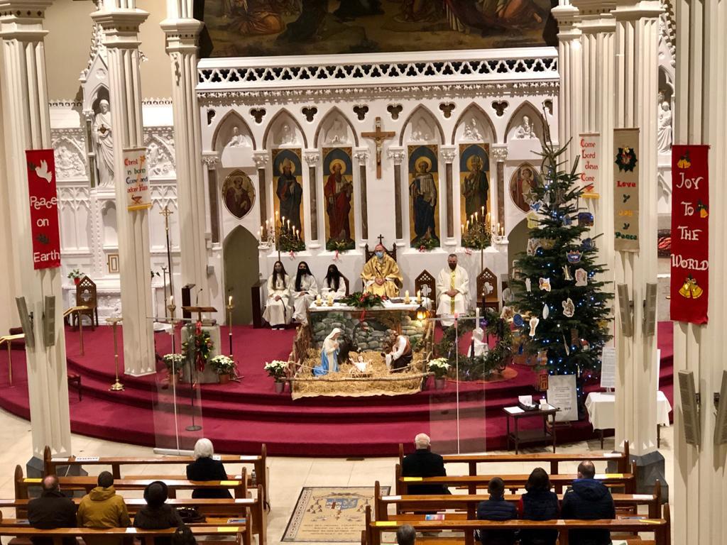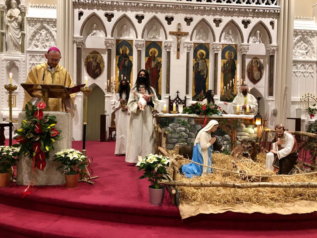 Christmas 2020 has been slightly more challenging this year with the number of people able to attend Mass being restricted. In order to accommodate as many worshippers as possible, the first Mass in the parish took place at 2pm on Christmas Eve and the last mass on Christmas night at 6.30pm. Bishop Fintan was the celebrant of the 9pm Vigil Mass in the Cathedral on Christmas Eve. Our Cathedral choir, like all choirs, was restricted this year in line with current guidance but during advent choir members were recorded individually and, with the help of technology and expertise, were able to bring the sound of Christmas music alive at the different masses.
