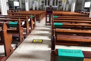 We ask people to enter by the main door, observe social distancing, use hand sanitizer and exit by the Grotto door.